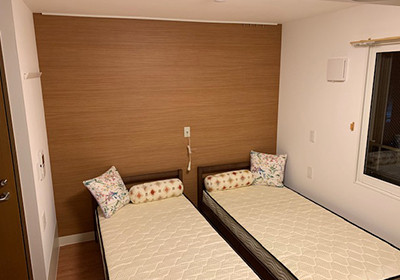 居室は広いので2名で入居できます。専有面積は25㎡(15畳)となります。 居室の面積は約16㎡(約9.5畳)となります。また、各居室に浴室と洗濯機置き場があり衛生的です。