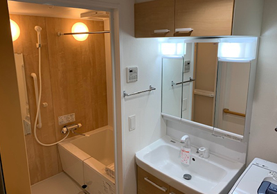 衛生面を考慮し、各居室にバリアフリー仕様の浴室と洗濯機用パンを設置しております。
